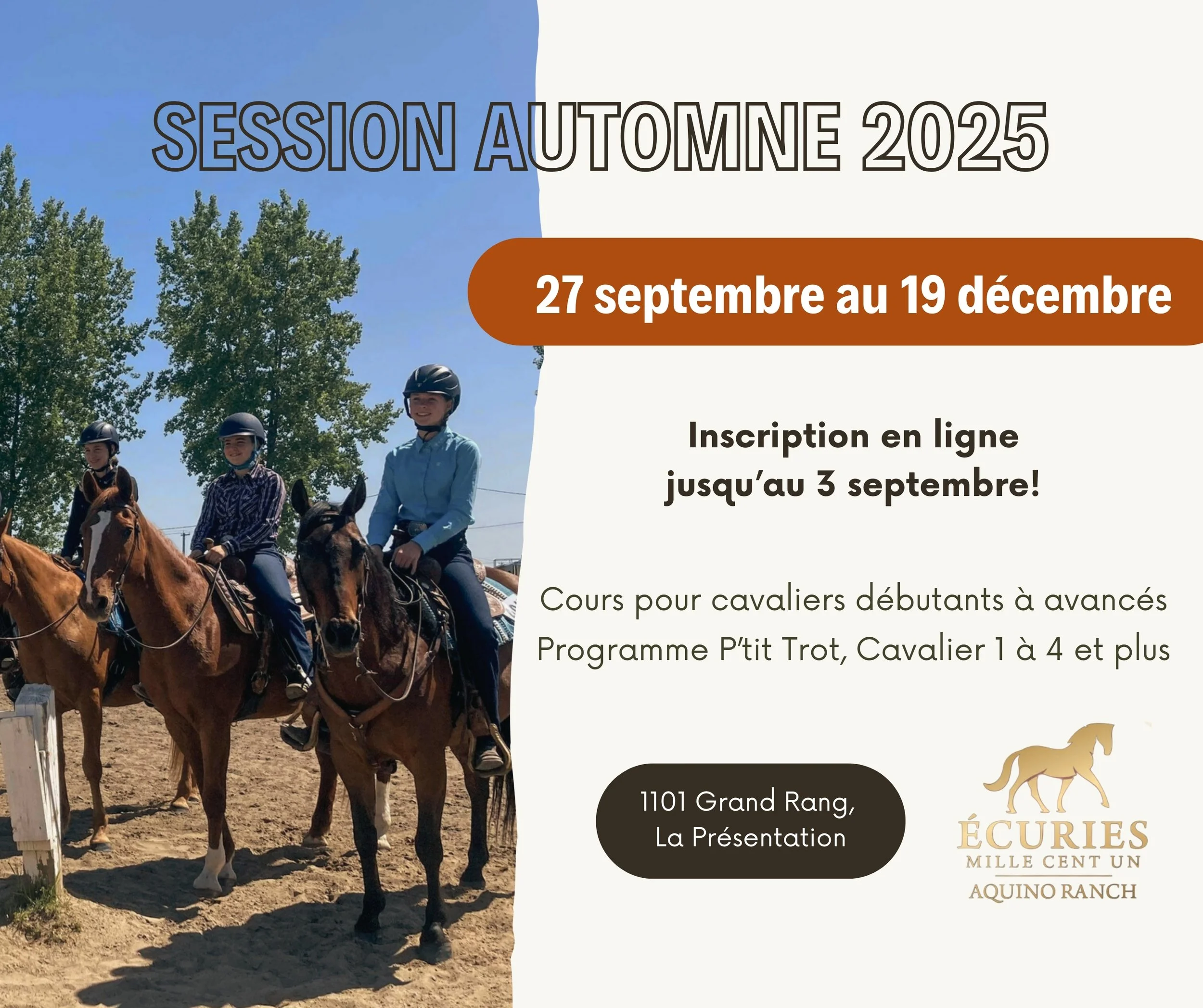 ◦ Cours de groupe (3 cavaliers et plus avec expérience) : 504,00$ +tx